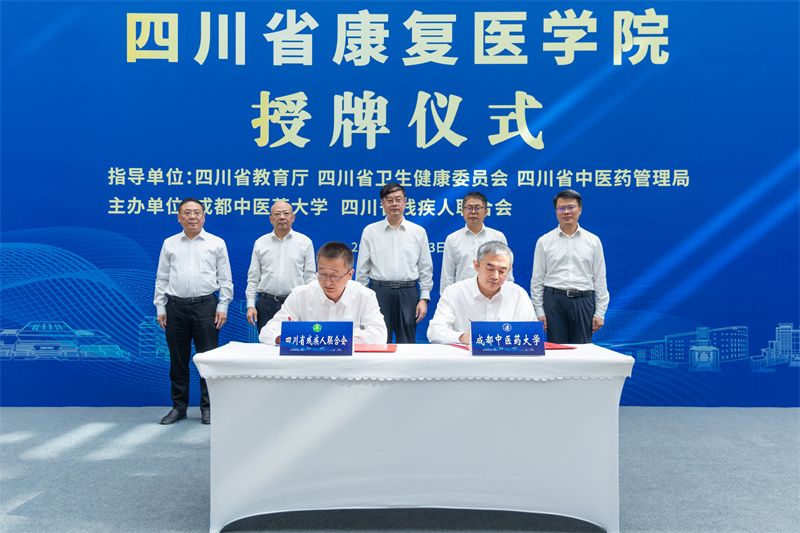 胡云为四川省康复医学院正式授牌,张泽钧代表学校接牌。