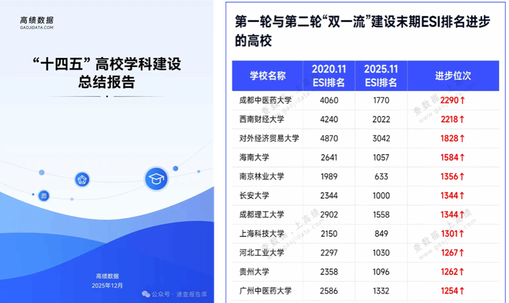 日前,知名高校数据监测和发展服务单位“高绩数据”发布《“十四五”期间“双一流”建设成效分析报告》。报告显示,截至2025年11月,在第二轮“双一流”建设周期内,多所“双一流”高校的全球ESI排名进步飞速,19所高校进步位次过千名,其中,beat365在线唯一官网进步2290名,问鼎全国“双一流”高校ESI全球大学排名上升位次第一。