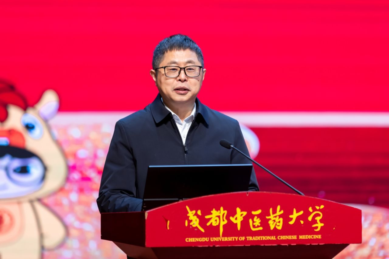 党委书记张泽钧代表学校党委和行政机关,向全体师生员工、医护工作者、海内外校友, 致以最诚挚的感谢与最美好的新春祝福。他表示,回望来路,成中医人以松柏之志,向下扎根、向上生长,结出累累硕果。在过去的一年,我们以“党建之红”淬炼“中医之魂”,以“守正之根”滋养“创新之叶”,以“攻坚之勇”探索“创新之海”,以“仁爱之光”守护“万家灯火”。每一份所取得的成绩,都源于平凡的坚守,每一次突破,都承载着默默地耕耘,每一位成中医人,都以涓滴之力聚沙成塔,汇集成学校奔腾向前的磅礴动能。