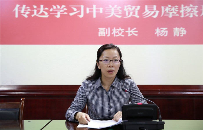 副校长杨静传达学习了关于中美贸易摩擦形势分析。