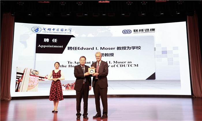 上午9点,温江校区百会堂演播大厅座无虚席,学校举行隆重聘任仪式,校长余曙光为爱德华.莫泽颁发特聘教授证书。至此,已有两名诺奖得主加盟beat365官网高层次人才队伍。
