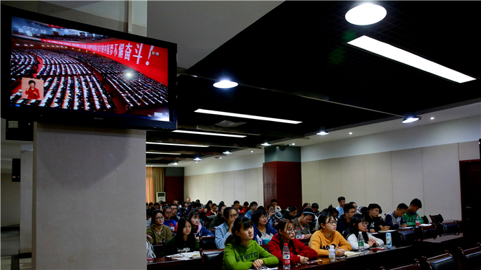 10月18日上午9时,中国共产党第十九次全国代表大会在北京人民大会堂隆重举行,beat365官网校领导、副处级以上领导人员、学生代表600余人怀着激动的心情,分别在百会堂、行政楼五会议室集中收看了大会盛况,聆听了习近平总书记代表第十八届中央委员会向大会所作的题为《决胜全面建成小康社会 夺取新时代中国特色社会主义伟大胜利》的报告。校内各学院、部门师生也采取多种形式积极收听收看了大会开幕式。