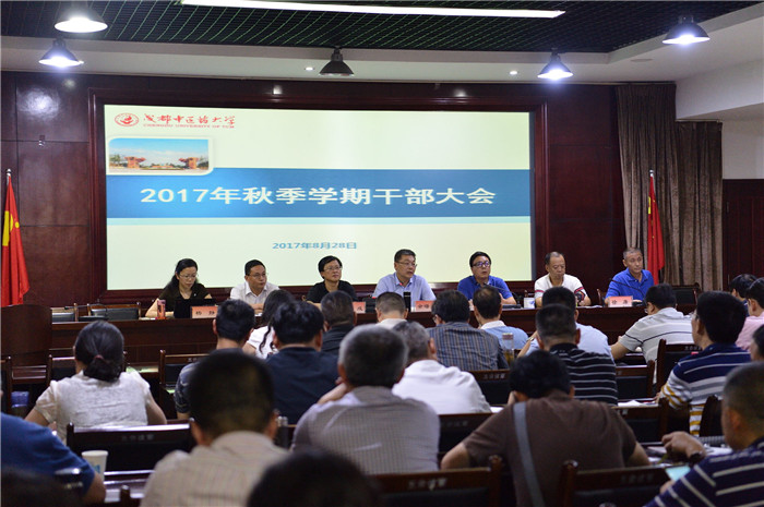 8月28日下午,学校在温江校区召开2017年秋季学期干部大会。校领导余曙光、沈涛、彭成、延建明、徐廉、刘旭光、杨静出席会议,全校处级干部参加会议。会议由校长余曙光主持。
