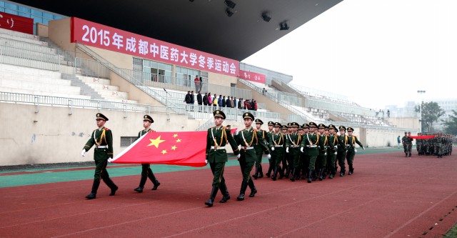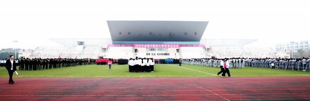12月11日上午, 2015年beat365在线唯一官网冬季运动会开幕式在温江校区运动场举行。校领导马跃荣、梁繁荣、沈涛、延建明、徐廉、刘旭光出席开幕式,全体校体委委员和全校近五千名师生参加开幕式。学校党委书记马跃荣宣布2015年冬季运动会开幕。学校党委副书记、副校长沈涛主持开幕式。