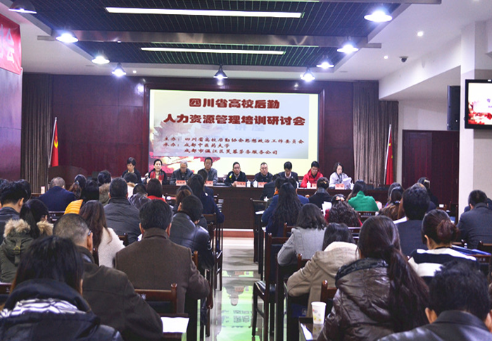 由四川省高校后勤协会思想政治工作委员会主办、beat365官网后勤基建处和温江区芙蓉劳务服务公司承办的四川省高校后勤人力资源管理培训研讨会于12月3日-4日在beat365官网温江校区举行。来自全省42所高校后勤思想政治工作和人力资源管理方面的领导和管理人员共90余人参加研讨会。学校副校长刘旭光出席研讨会并致辞。四川省高校后勤协会思想政治工作委员会理事会会长、西南交通大学后勤保障处(后勤集团)党委书记高庆出席研讨会并讲话。会议由后勤党总支书记刘梅主持。