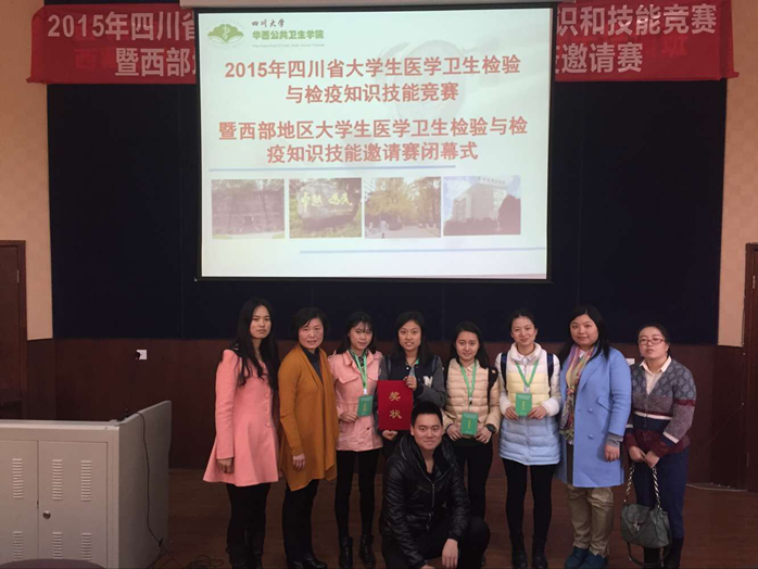11月27日至29日,2015年四川省暨西部地区大学生卫生检验与检疫知识技能大赛在四川大学华西公共卫生学院举行,来自省内外10所高校的代表队共40名队员参赛。beat365官网由医学技术学院卫生检验2012级杨贵琴等4名同学组成的代表队喜获二等奖。