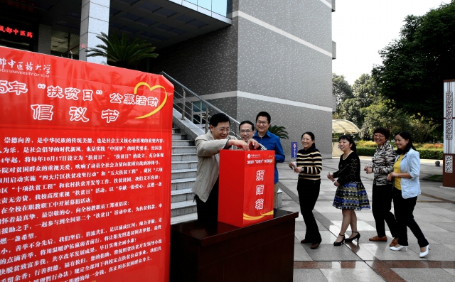 学校分别在温江校区行政楼前广场、十二桥校区一教学楼、温江校区百会堂、温江校区逸夫楼设立了捐赠点,向全校在职教职工募集扶贫资金。涓涓细流汇成大海,点滴善举成就大爱。公募活动中,学校校领导班子成员积极带头、教职员工纷纷响应,大家尽己所能、慷慨解囊,“扶贫日”公募活动当天共募集捐款11263元。