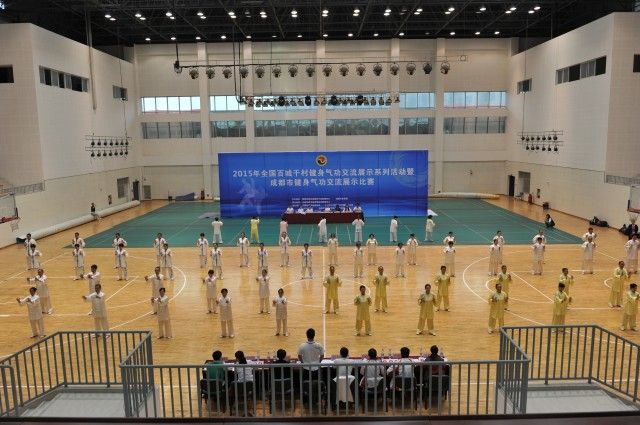由国家体育总局健身气功管理中心、成都市体育局主办,成都市武术跆拳道运动管理中心承办的2015年全国开展百城和千村健身气功交流展示活动成都市启动仪式暨成都市健身气功交流展示比赛于9月25日在beat365官网温江校区体育馆举行。来自21个区市县29支队伍共计500名运动员参加此次盛会,beat365官网多名武术专业教师分别担任了总评判长和评判员。