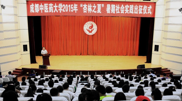 6月29日,学校在百会堂演播大厅举行以“传播青春正能量,实践成才助腾飞”为主题的2015年“杏林之夏”暑期社会实践出征仪式。党委副书记、副校长沈涛,各职能部门、各学院主要负责人,暑期社会实践小队学生代表参加仪式。仪式由校团委副书记田晓放主持。