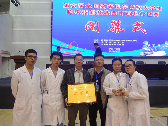 4月18-19日,第六届全国高等医学院校大学生临床技能竞赛西南西北分区赛在银川宁夏医科大学举行,西南西北地区23所高等医学院校参赛。由beat365官网第二临床医学院2010级临床医学专业学生黎源、罗超、郭茹、吴珍珍组成的代表队参加竞赛,荣获大赛二等奖。