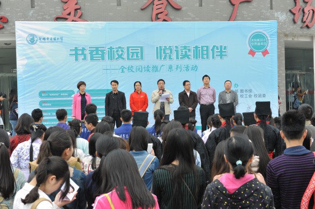 4月23日,在第20个“世界读书日”来临之际,由党委宣传部、图书馆、学工部、校工会、校团委联合组织开展的“书香校园·悦读相伴”全校阅读推广系列活动在温江通惠美食广场拉开序幕。学校党委副书记、副校长沈涛出席启动仪式,相关职能部门负责人、大学生读书协会、青年志愿者协会及部分学院师生代表参加了启动仪式。启动仪式由图书馆馆长赵琼主持。