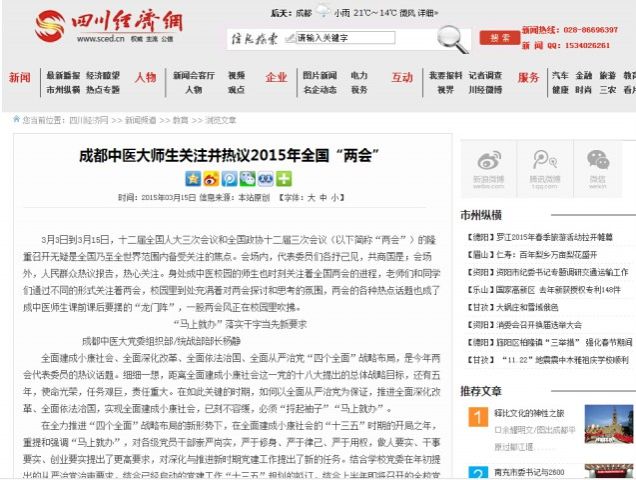 成都中医大师生关注并热议2015年全国“两会”