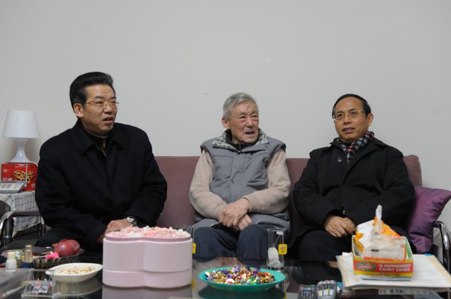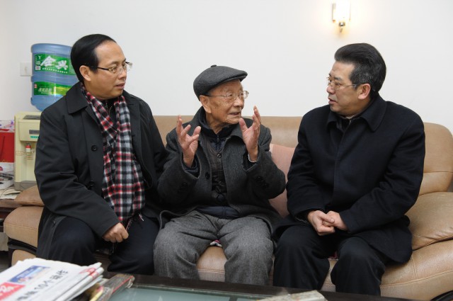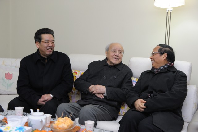 1月28日上午,在2015年春节来临之际,党委书记马跃荣、校长梁繁荣冒着蒙蒙细雨,登门看望了学校离休老领导郝计有、田枫、魏云祥,老红军龚锦文,国医大师郭子光,向他们致以新春佳节的节日问候。