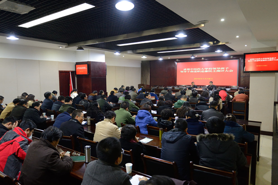 参加测评会的各方面代表对校领导班子和领导干部进行了年度考核民主测评及廉政测评。
