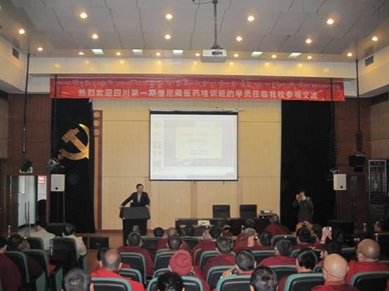 11月14日上午,由四川省委统战部和省中医药管理局组织,四川第一期僧尼藏医药培训班的学员一行60余人来beat365官网参观交流。学校高度重视,专门组织学校办公室、党委统战部、保卫处、药学院和民族医药学院等单位和学院的领导、老师陪同参观。
