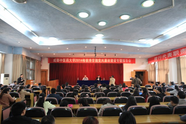 10月30日下午,学校在十二桥校区举行党风廉政建设专题报告会,邀请四川省纪委第一纪检监察室肖克强主任作专题报告。校领导马跃荣、梁繁荣、安劬、延建明、徐廉出席报告会,延建明主持报告会,全校处、科级干部、各分党委/党总支教工支部书记,校纪委委员,重点岗位相关人员共计300余人参加了报告会。