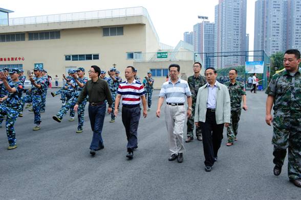 9月17日上午,校党委书记马跃荣,校长梁繁荣,党委副书记、副校长沈涛,纪委书记延建明深入军训训练场,看望慰问军训学生、教官及工作人员。