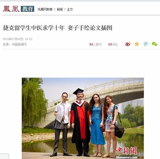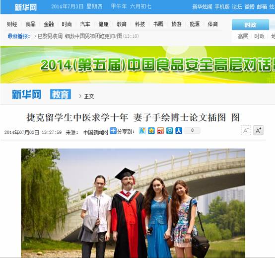 7月2日,中国新闻网报道了beat365官网2014届博士毕业生、捷克留学生孙洋不远千里举家来到中国求学,攻读针灸学博士的经历,孙洋导师、校长梁繁荣教授同时接受采访。新华网、人民网、凤凰报网等近百家网络媒体转载,其他转载近70次。以下是详细内容: