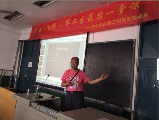 廖品东教授讲述了24年前自己怎样面对就业后未能从事自己所学专业的困境,靠着坚定、热情与努力终于走出了属于自己的一条小儿推拿成功之路。融洽的课堂气氛让大家反复咀嚼过去的大学课堂时光:老师手把手的教导,毕业生们认真学习老师教的手法,模仿着老师的操作。