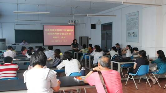 针灸推拿学院/第三附属医院举行提高青年教师教学能力专题讲座 发布时间:2014-06-26 10:33:00 浏览次数: 次 【字体:小 大】 近日,针灸推拿学院/第三附属医院为进一步提高学院教师业务素质和教学水平,邀请校级教学名师胡幼平教授面向全院教师作题为《进一步提高教师教学能力》的专题讲座。胡教授从教学能力设计——教学策略入题进行讲解,特别以《刺法灸法学教学策略》为例,对多媒体组合应用、重难点比较、病案式PBL教学等策略进行详尽介绍;针对《刺法灸法学》操作性强的特点,强调“教练合一”的教学模式,注重启发学生思维,并合理设计教学策略,使教学内容深入浅出。 (针灸推拿学院/第三附属医院) 【打印正文】 上一条:公卫学子喜获“创青春”四川省大学生创新创业大赛铜奖 下一条:针灸推拿学院/第三附属医院举行提高青年教师教学能力专题讲座
