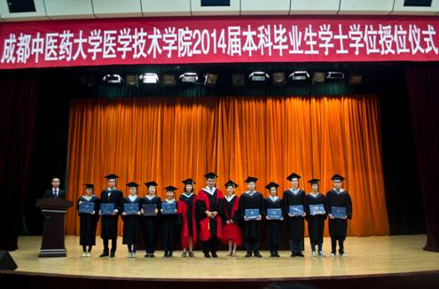 6月20日上午,医学技术学院2014届本科毕业生学士学位授予仪式在百会堂举行,学校副校长安劬和学院领导李燕、王英文、邓菲、国锦琳、罗萍以及学院全体教师出席仪式,学院2014届本科毕业生、在校生代表参加仪式。