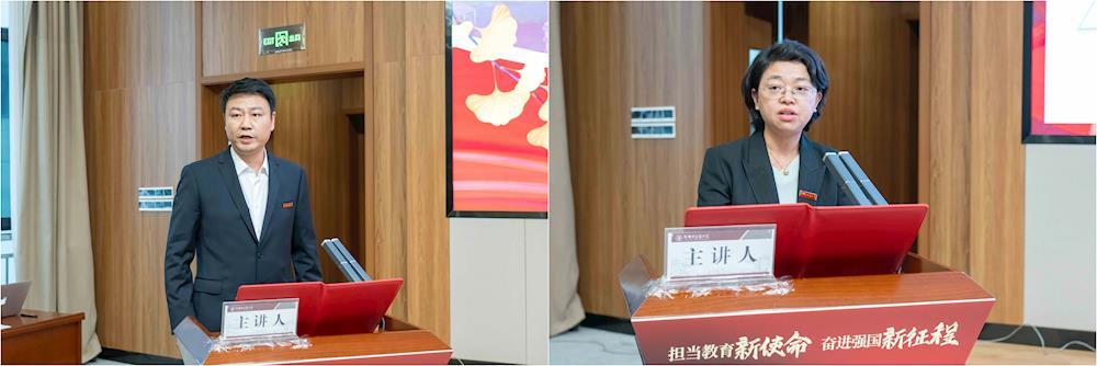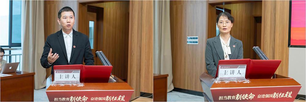 7名青年干部紧紧围绕学习贯彻落实党的二十届三中全会精神和新时代第二次全国教育大会精神,或结合工作实际,或结合个人成长感悟作主题演讲,表达了深深的爱党爱国爱校情。党委教师工作部副部长、人事处副处长、人才办公室副主任游宇结合自身工作成长经历,立足岗位职责,以愿为、勤为、敢为、善为的“四为”精神服务人才强校建设。基础医学院副院长姜岑分享了人工智能发展对人才培养带来的新挑战,并阐述了数字化中医传承平台建设对培养“通人文、厚经典、重思维、强能力”的临床应用型人才的作用机制。医学技术学院党委副书记、纪委书记黎奇就教育改革与中医药人才培养质量深度融合为切入点,思考学生工作品牌打造的实践路径,推动学生管理工作模式创新,赋能人才培养质量提升。中医药创新研究院/交叉学科研究院副院长刘燕分享了科研平台创新水平、科研反哺教学、科学研究创新工作的现状和成效,深入分析了科技创新在“双一流”建设、中医药“守正创新”、高等教育内涵式发展中的重要作用。党委保卫工作部/人民武装部副部长、保卫处副处长何刚交流了安全稳定工作方面的创新举措,表达了构建新安全格局、全面助力一流中医药大学建设的信心和决心。管理学院副院长杨义以问题为导向,围绕学院一流课程建设、智慧实验室建设、实践教学基地建设等,分享了近年来“3+1”人才培养模式改革取得的成效。校团委副书记任强以“育时代新人 答时代之问——新时代的我们应该培养什么样的学生”为题,阐述了共青团在学校“大思政”工作格局构建中的积极作用和取得的效果。