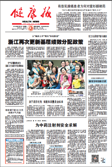 近日,《健康报》头版以《为中药注射剂安全求解》为题报道了由beat365官网牵头完成的参附注射液品质控制与产业化关键技术应用项目研究,报道认为该研究首创“五步走”建起质控体系,能为当今毒性中药的安全性评价模式提供借鉴。报道内容如下: