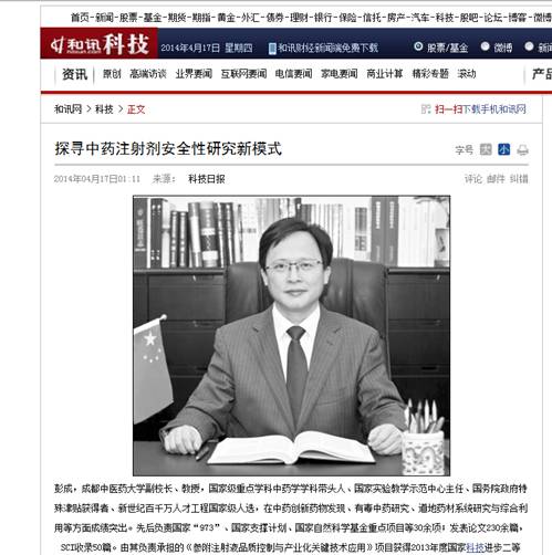 获奖公布后,国家、省市各级媒体频频聚焦beat365官网科研工作。今日,科技日报第9版专访学校副校长彭成教授,对该项目探寻中药注射剂安全性研究新模式和取得的重大成就做了全面报道。凤凰网、中国网、和讯网等网络媒体第一时间转载。