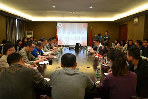 4月17日中午,后勤基建处举行2014年春季学期学生后勤服务工作交流恳谈会。后勤基建处党总支书记刘梅、副处长杜靓、学生处副处长王海、校团委书记佟枫,以及饮食服务中心、公寓服务中心、物业服务中心、校医院等有关部门负责人与校学生会生活部、各学院三十多位学生代表进行了面对面的交流,通过恳谈会的形式征求同学们对后勤服务工作的意见和建议,从而更进一步改进工作,不断提高后勤服务质量。