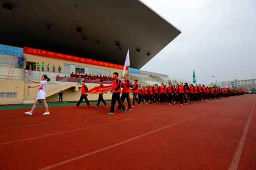 九时三十分,开幕式入场式开始。国旗班庄严地护卫着国旗进场,体育学院方阵率先入场,各学院方阵紧随其后,各方阵同学统一服装,整齐踏步,随着运动员进行曲,迈着矫健的步伐进入田径场,走过主席台。参加开幕式的全体师生肃立,凝视国旗,齐唱国歌,爱国之情油然而生。