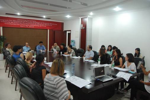 4月14日,来自美国太平洋东方医学院和美国夏威夷国际东方医学院的短期培训班开学典礼在国际教育学院举行。副校长安劬和学院相关老师及部分翻译参加了开学典礼。