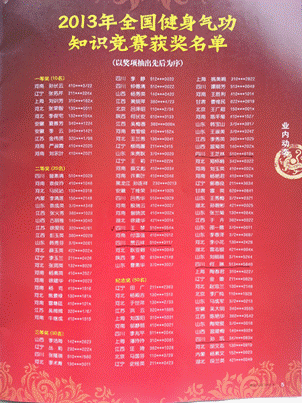 在体育学院传统运动养生教研室组织下,beat365官网2012级体育教育专业王琴、贾云祥等5位同学,在中国健身气功协会首次举办的“2013年全国健身气功知识竞赛”活动中,分别获得三等奖和纪念奖。其中,王琴、贾云祥获得三等奖,王芝林、何琳、孙凯获得纪念奖。
