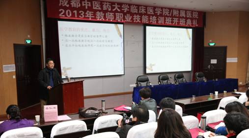 高林远讲话表示,四川省高校师资培训中心和beat365在线唯一官网共同举办此次培训班的目的就是要紧紧围绕培养高素质新型医学人才这个核心,通过培训和交流完善临床带教老师的自身素质,提高带教水平。他指出,省高校师资培训中心首次举办一线骨干医务工作者教师职业技能专题培训班是改革培训模式,拓宽培训渠道的大胆尝试,本次培训采取送培到校的培养方式,也是扎实推进党的群众路线教育实践活动,加强中心服务意识,提高服务质量,深入基层开展培训的一项具体措施。高林远希望学员要珍惜机会,克服困难,集中精力,加强交流探讨、取长补短、共同提高;要自觉遵守培训中心管理规定和纪律要求,服从安排,以饱满热情圆满完成学习任务;要在今后教育教学工作中,解放思想、勇于创新、开拓进取,为我省高等教育事业和医药卫生事业改革发展做出更大贡献。
