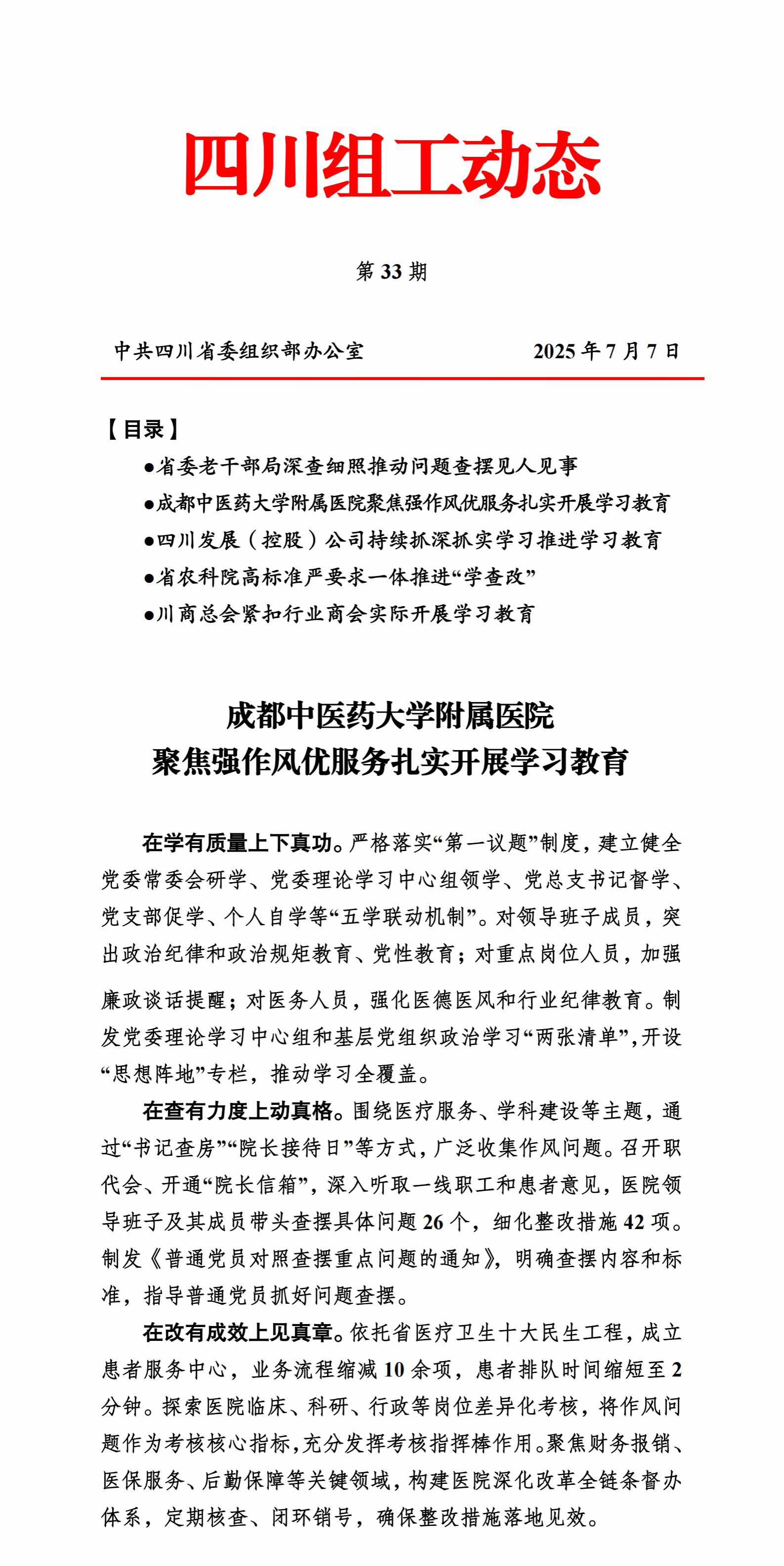 成中医经验|《四川组工动态》刊登beat365官网附属医院学习教育工作做法 发布时间:2025-07-11 21:57:04 浏览次数: 次 【字体:小 大】 7月7日,《四川组工动态》第33期刊登了beat365官网附属医院学习教育的工作经验——beat365在线唯一官网附属医院聚焦强作风优服务扎实开展学习教育。 【打印正文】 上一条:beat365官网社科联获评全国先进社科类社会组织 下一条:学校召开党委常委会会议学习贯彻习近平总书记重要文章精神研究部署贯彻落实意见