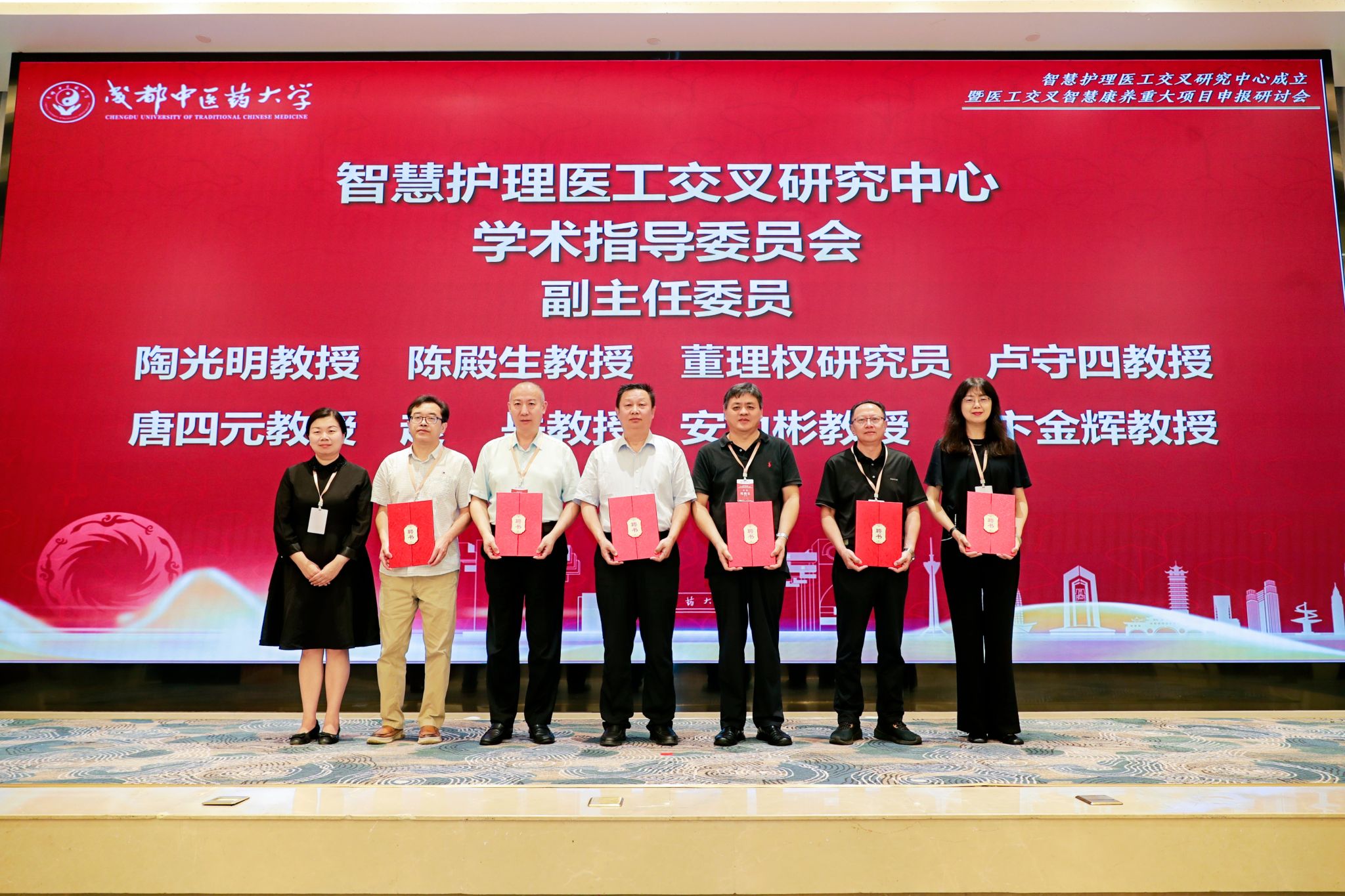 全国医学教育发展中心常务副主任王维民、教育部高等学校护理学类专业教学指导委员会秘书长孙宏玉分别向大会致辞,对beat365官网成立智慧护理医工交叉研究中心,提前布局护理学科未来发展方向予以肯定。学校科技处主持工作副处长张定堃宣读研究中心学术指导委员会名单。曾芳与孙宏玉共同为研究中心揭牌,并颁发了学术指导委员会委员聘书。