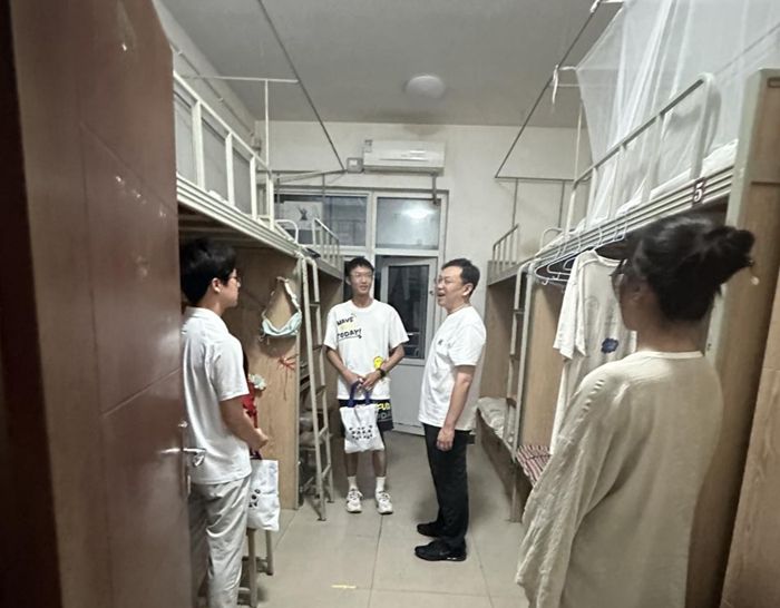世运会志愿服务期间,校团委副书记任强深入志愿者寝室开展走访慰问活动。