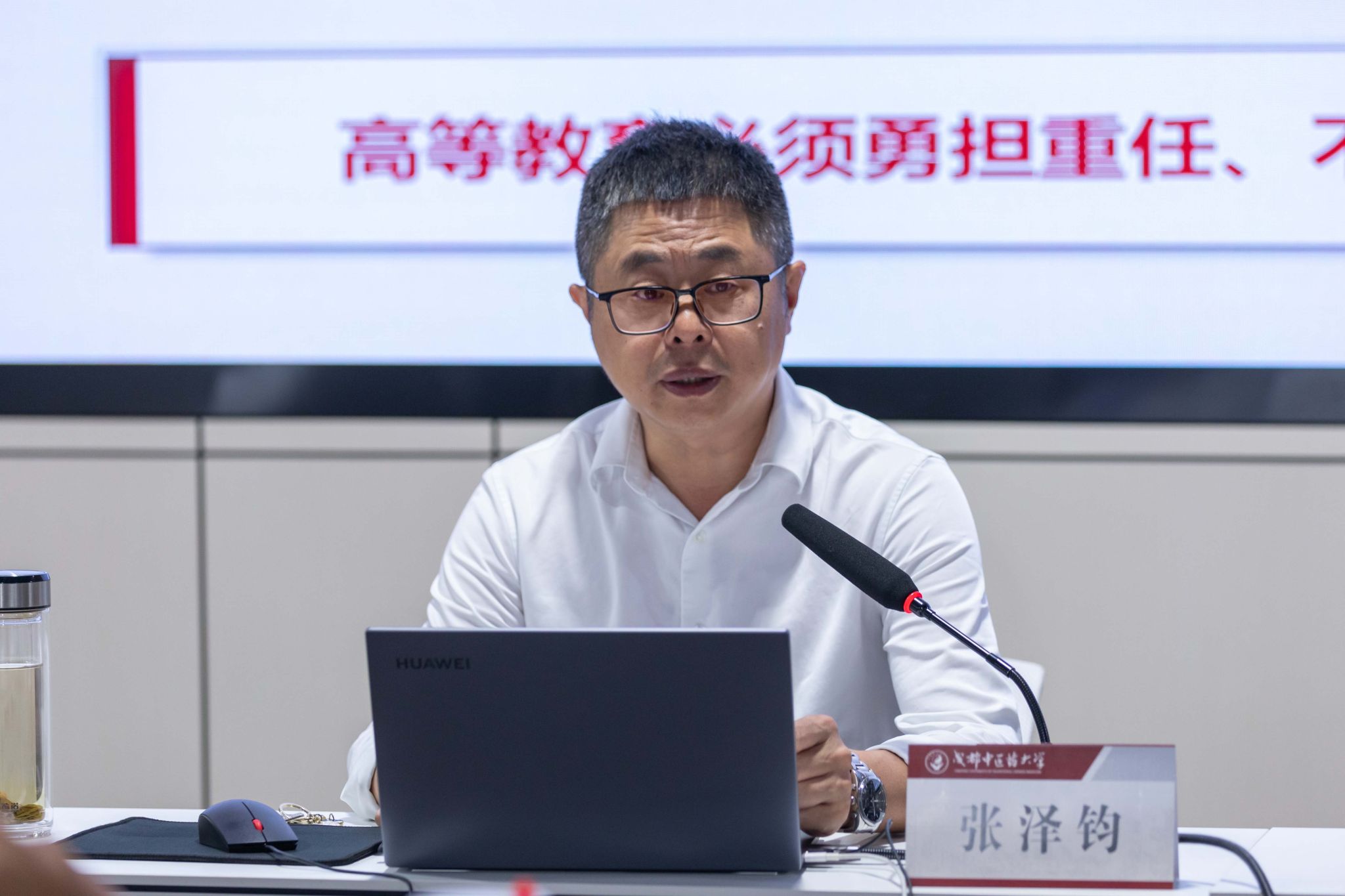最后,张泽钧系统阐述了“教育家精神”的成中医表达,勉励新入职教师要大力弘扬和践行教育家精神,在中医药教育沃土上成长为新时代的“大先生”。号召新教师将个人理想融入学校“奋进、幸福、美丽、仁爱”的愿景,在中医药振兴发展的壮阔征程中,将个人理想融入国家战略,用仁心仁术培养更多中医药事业接班人,为健康中国建设贡献成中医力量。