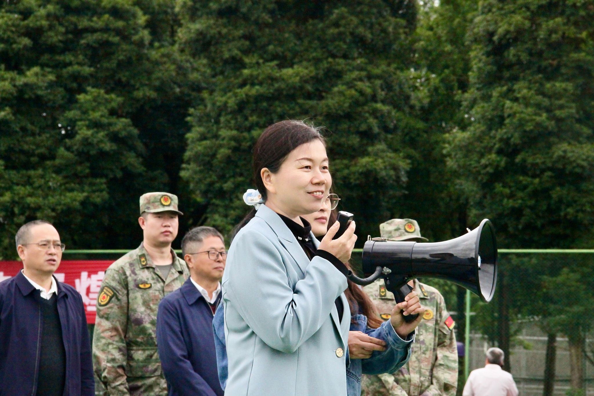 曾芳亲切询问军训同学的身体状况和训练感受,肯定他们在军训中展现出的纪律性、团队精神和吃苦耐劳品质。她结合中医理念,生动阐释道:“中医讲究‘精气神’,军训是涵养精气神的一个重要活动。‘精’是敢于挑战、勇往直前的坚韧精气,‘气’是强壮身体的坚实底气和不怕困难的昂扬锐气,‘神’是能支撑未来职业生涯中由内而外追求卓越的精神力量。”她希望同学们珍惜军训时光,把自己的精气神培养成今后在学业和职业生涯中最宝贵的精神财富和最坚实的动力源泉。