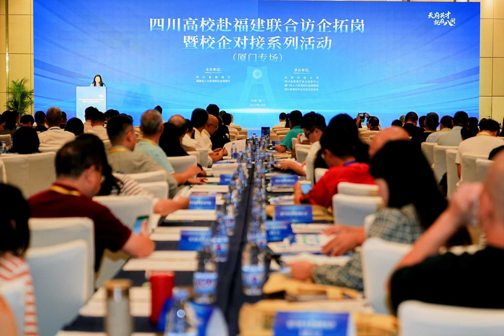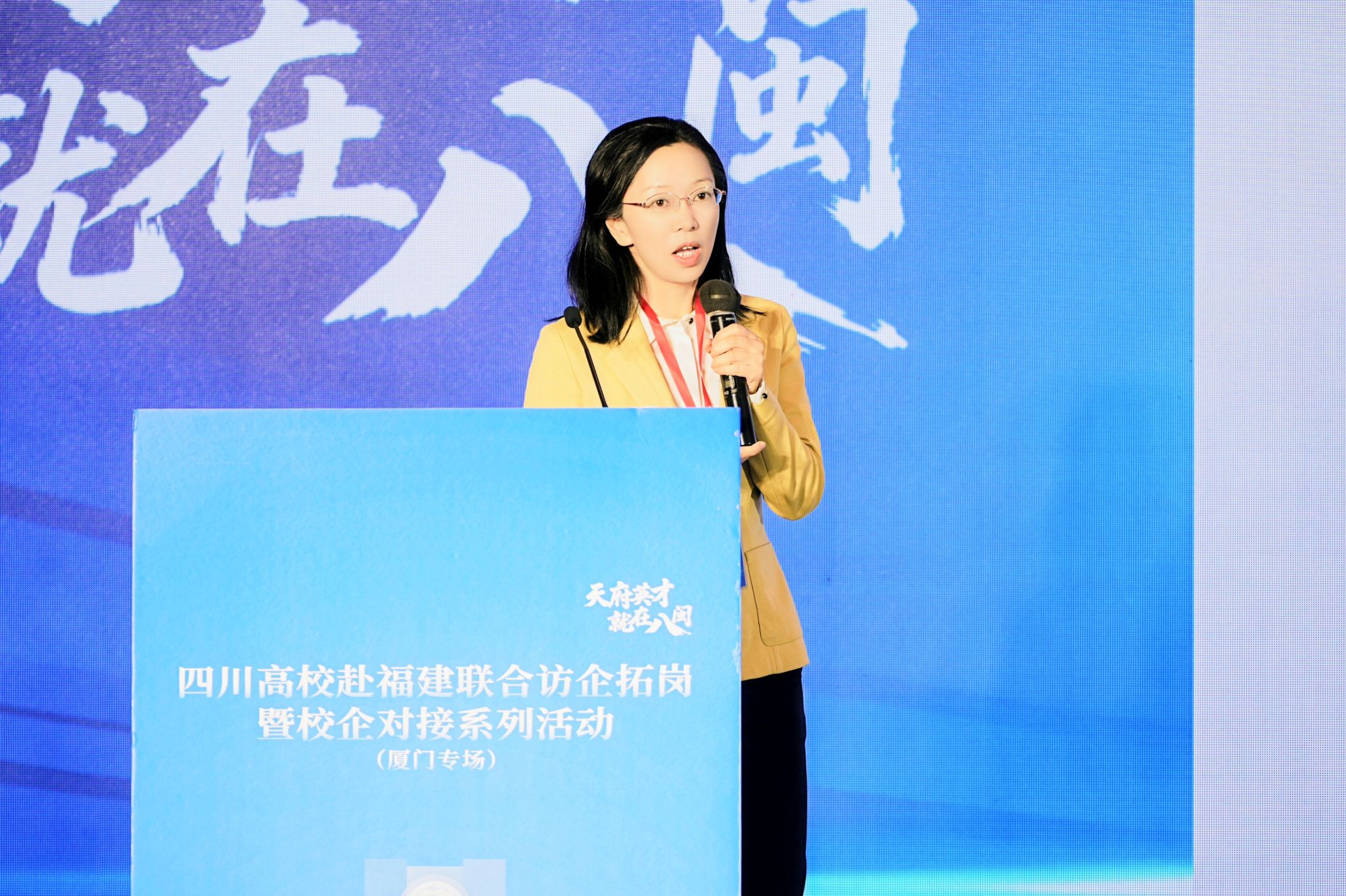 10月20日,厦门专场推介会举行,四川省40所高校及厦门市60余家企业代表到场参会。作为四川省3所推介高校之一,杨静在大会作学校推介发言,她系统介绍了beat365官网厚重的办学历史、学科专业人才优势、国家级教学科研临床平台建设、人才培养成效、就业育人等情况,全面呈现了学校的教学、科研、医疗、人才、文化、服务社会等状况及合作愿景,希望此次来闽与福建医药健康领域相关单位深化合作,并邀请福建省用人单位来校选才,助力健康中国与中医药事业高质量发展,获得在场用人单位高度关注。