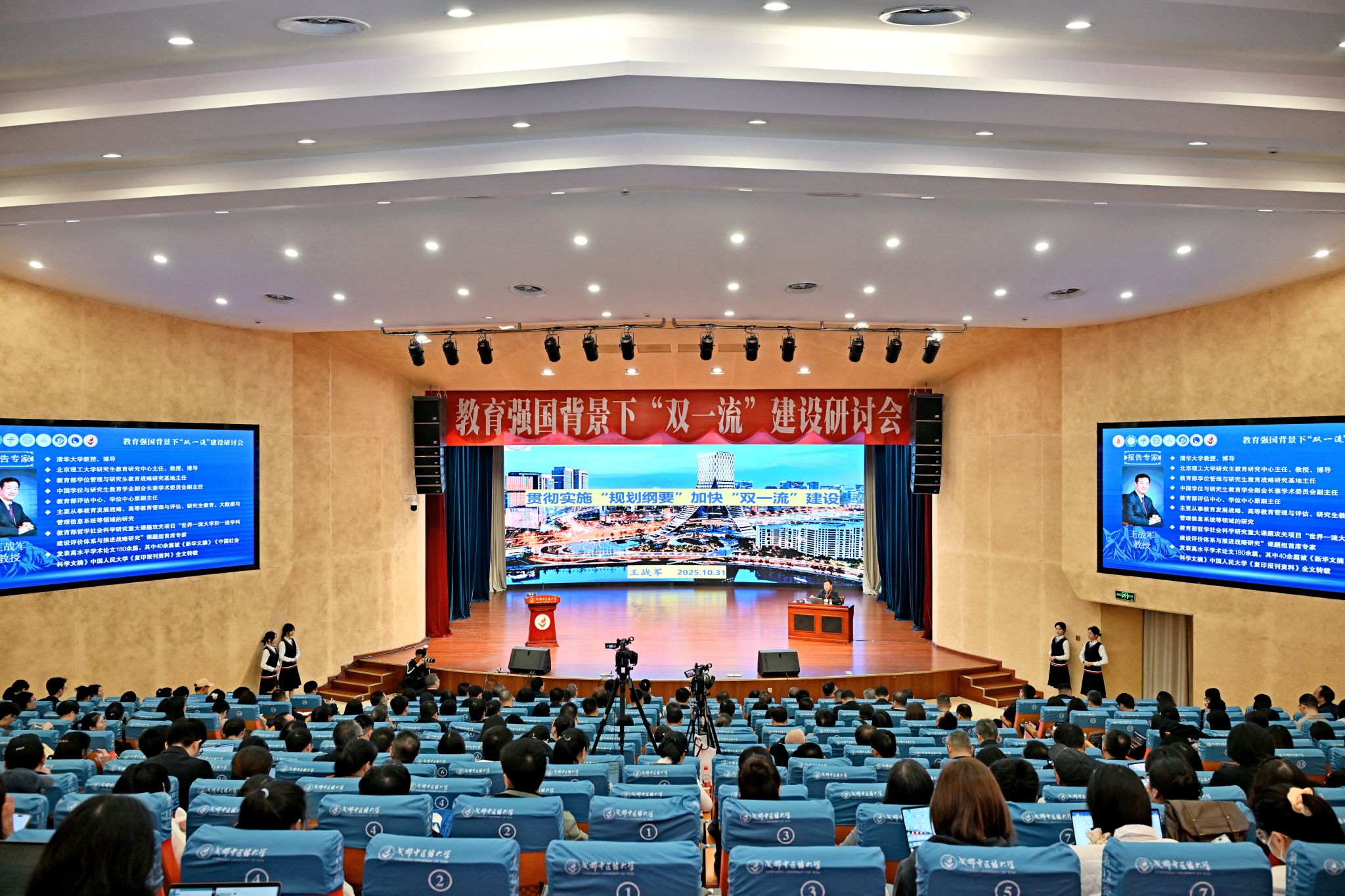 戴作安致辞指出,“双一流”建设是党中央作出的重大战略决策,是建设教育强国的引领性、标志性工程,也是推动教育科技人才一体发展的关键引擎。对接国家建设战略,四川省实施高等学校“双一流”建设贡嘎计划,聚焦“高精尖缺”构建一流学科建设体系,研究生招生规模增长28%,其中博士招生规模增长34.9%,突破性获得国家科技进步一等奖,为社会提供“四技服务”超1万项。当前,四川高等教育正在重点推进三个方面的工作:分类推进一流学科建设,切实提升学科核心竞争力;深入实施高层次人才引育战略,打造一流师资队伍;持续提升基础研究创新能力,加快产出标志性成果。