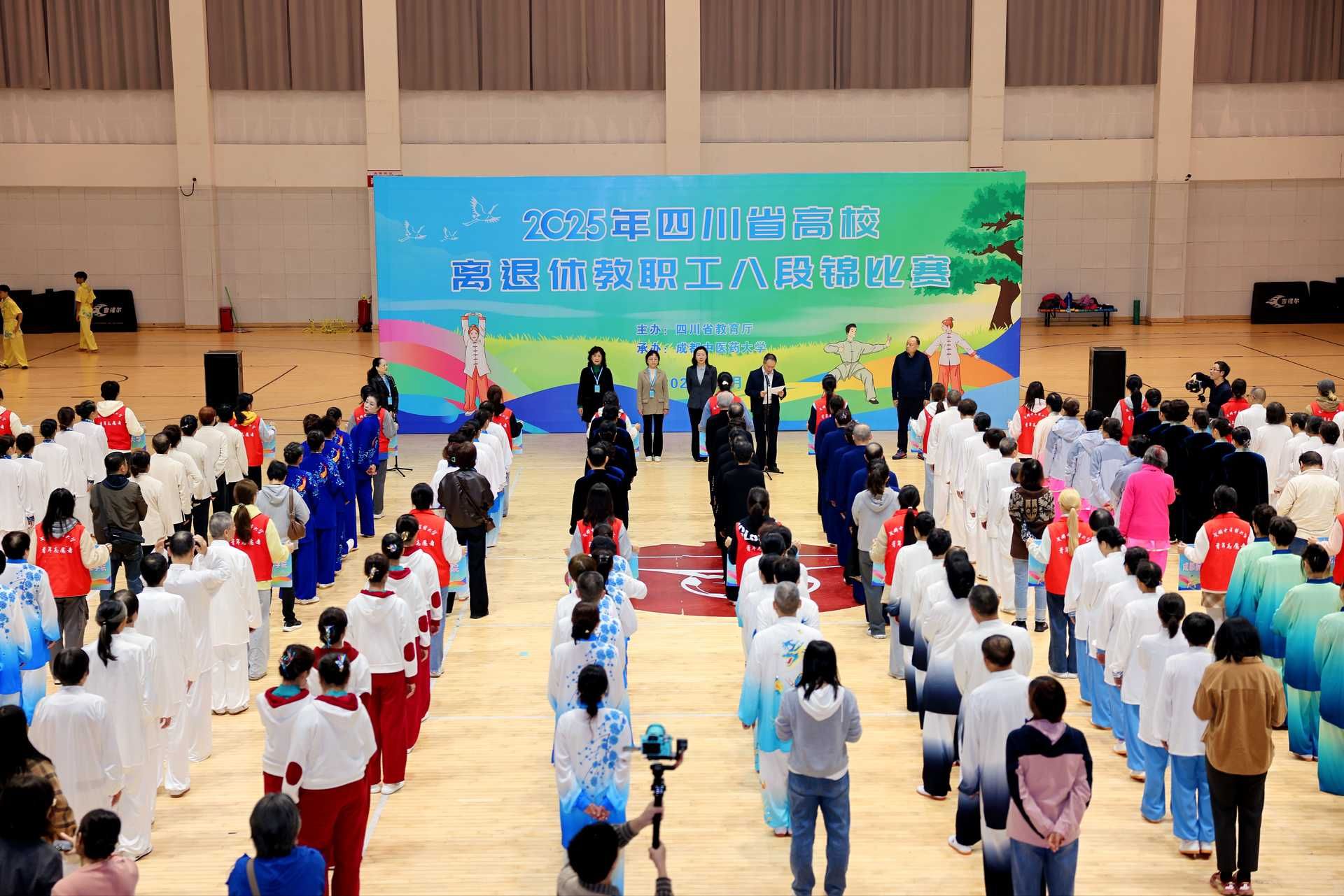 橙黄橘绿秋意浓,岁末藏韵暖如春。10月31日,四川省教育厅主办、beat365官网承办的全省高校离退休教职工八段锦比赛在温江校区圆满举行。来自全省27所高校的代表队齐聚一堂,以养凝心、以赛会友。四川省教育厅一级巡视员胡卫锋及相关领导、学校党委副书记杨静出席开幕式。