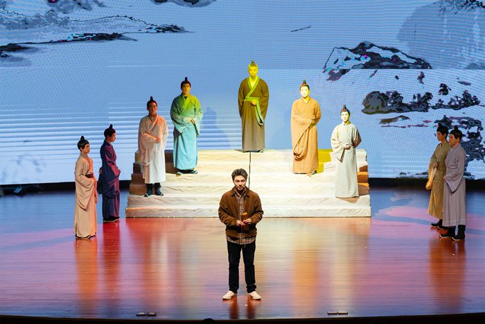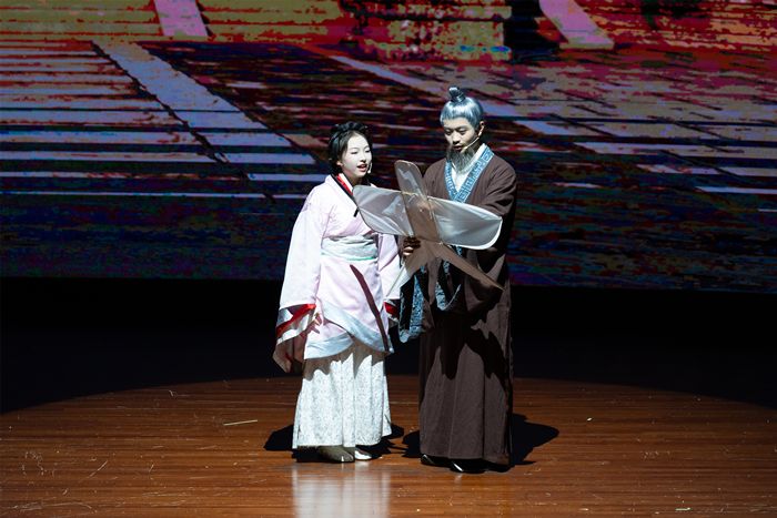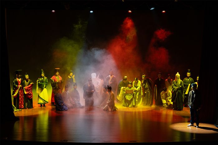 作为学校精心打造的中医药文化传播精品力作,舞台剧《天回》以2012年成都天回镇重大医学考古发现为叙事起点,首次将《史记·扁鹊仓公列传》中的中医药历史故事搬上舞台。该剧以西汉著名医家仓公淳于意为核心人物,生动演绎了其继承发展扁鹊医术、因蒙冤入狱其女舍身救父,最终坚守初心悉心传医的感人故事,巧妙串联起《天回医简》的“前世今生”,让沉睡千年的医简在舞台上“活”了起来。