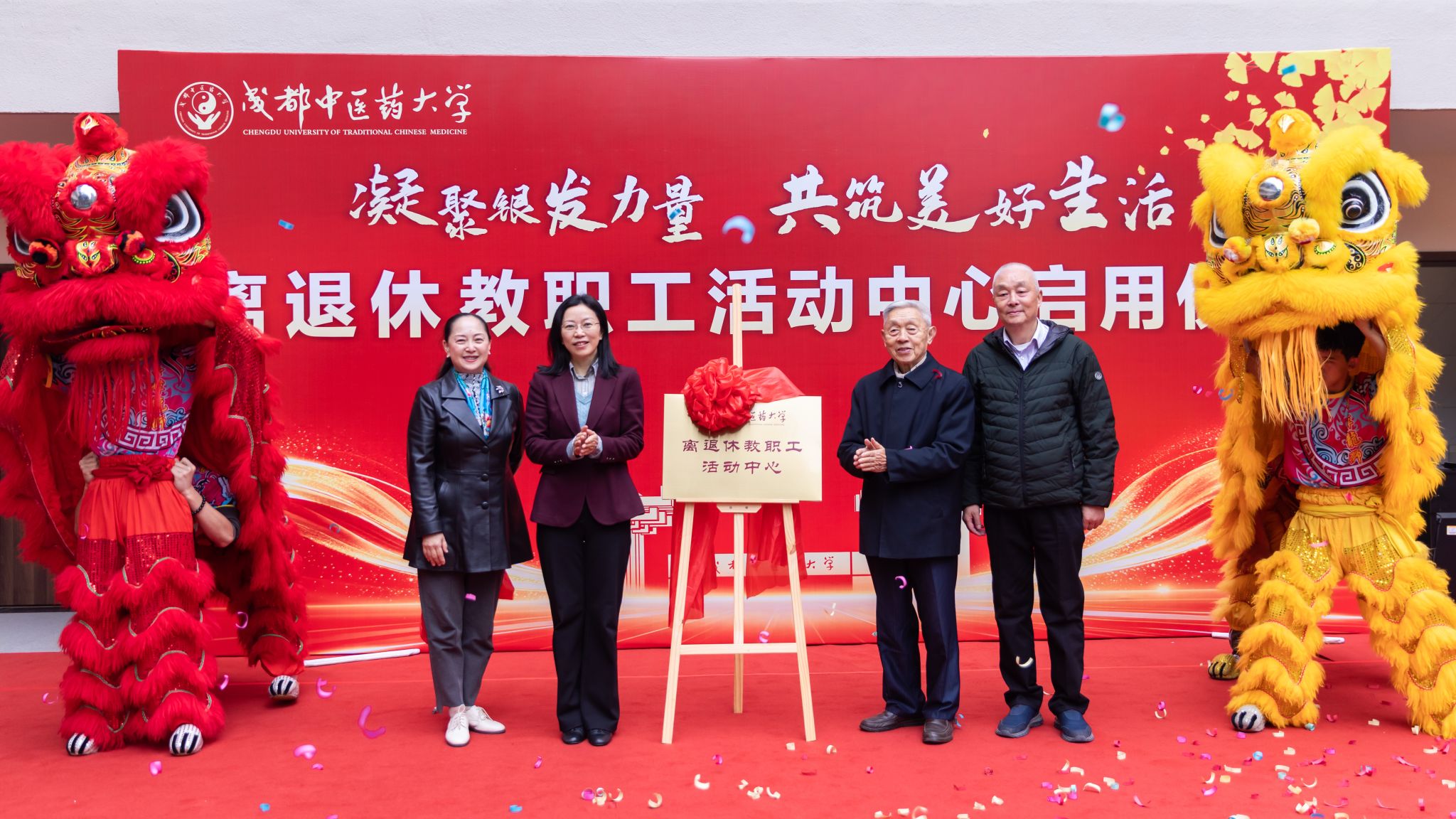 伴随着激昂的音乐,杨静、退休老领导郑士杰、董蕾、离退休教职工代表秦少林共同为离退休教职工活动中心揭牌,杨静宣布活动中心正式启用。