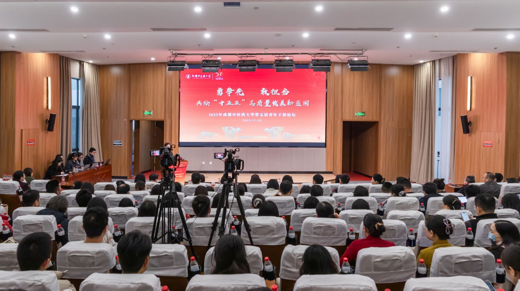 本次论坛系统回顾了近年来学校干部队伍建设成效,精准对接“十五五”发展规划要求,为青年干部搭建了思想碰撞、经验分享、共谋发展的平台,凝聚起推动学校高质量发展的年轻力量。演讲干部所在学院/部门主要负责人、中层副职领导干部、“双带头人”教师党支部书记、科级干部代表以及年轻储备干部共计200余人参加论坛。