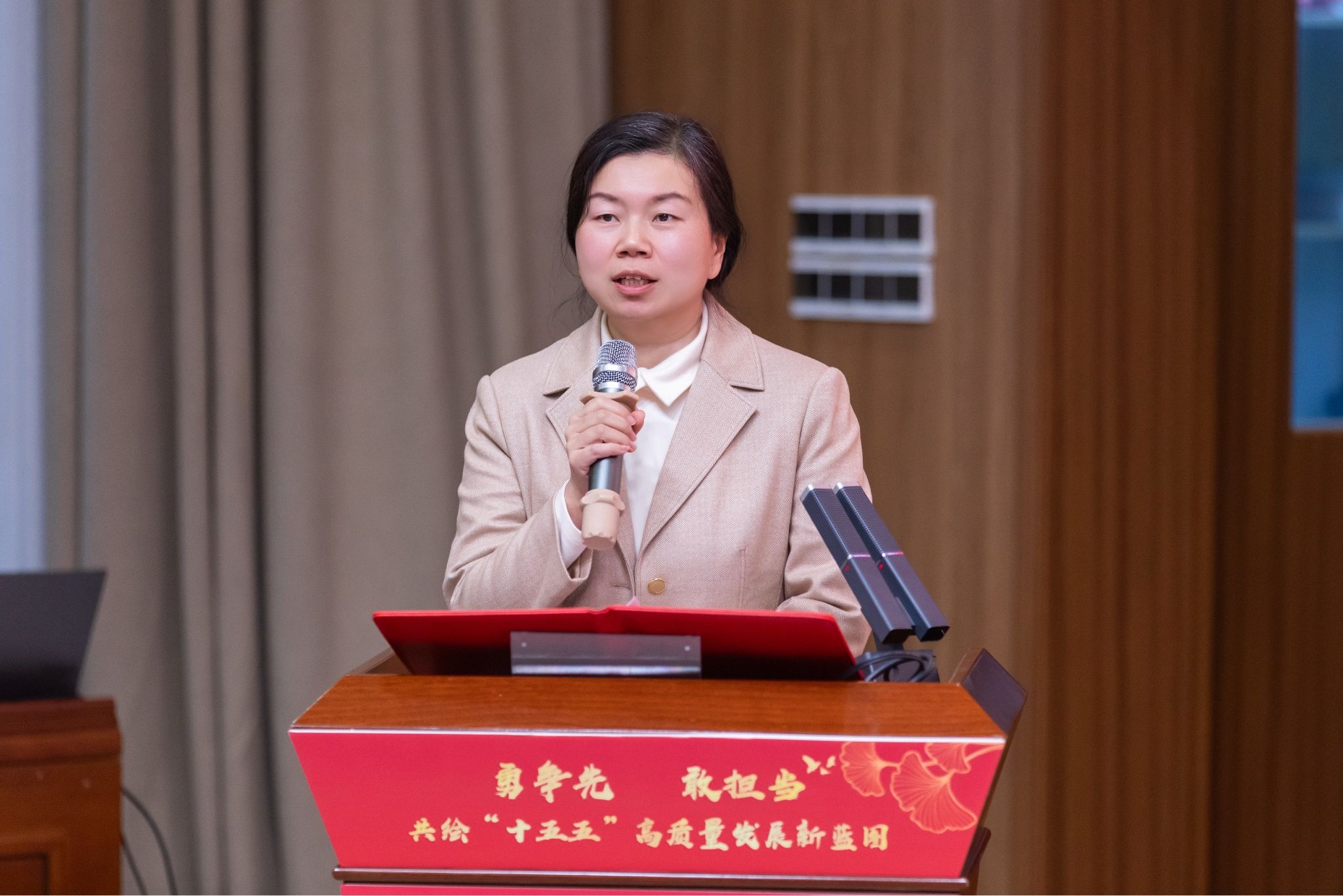 11月26日,beat365官网第五届青年干部论坛在弘景楼报告厅举行。论坛以“勇争先 敢担当 共绘‘十五五’高质量发展新蓝图”为主题,党委书记张泽钧,党委副书记、校长曾芳,党委副书记杨静,党委常委、副校长黎胜红出席论坛。论坛由党委常委、组织部/统战部部长赵凌主持。