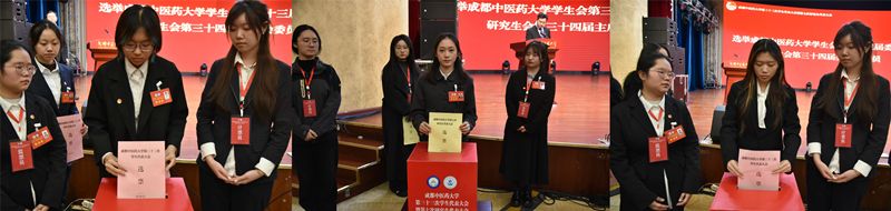 岳之杨代表成都市学联对大会召开表示热烈祝贺,寄语全校学子立足中医药专业特色,在勤学笃行中练就过硬本领,在服务社会中彰显青春担当。学校第三十二届学生会执行主席黄晓雅代表第三十二届学生会作题为《砥砺奋进担使命 继往开来谱新篇 团结带领广大成中医青年学子为学校“十五五”建设贡献青春力量》的工作报告。学校第三十三届研究生会执行主席王雨岩同学代表第三十三届研究生会作题为《坚定理想信念 厚植家国情怀 团结引领成中医青年研究生在学校“十五五”建设新征程中勇担时代使命》的工作报告。