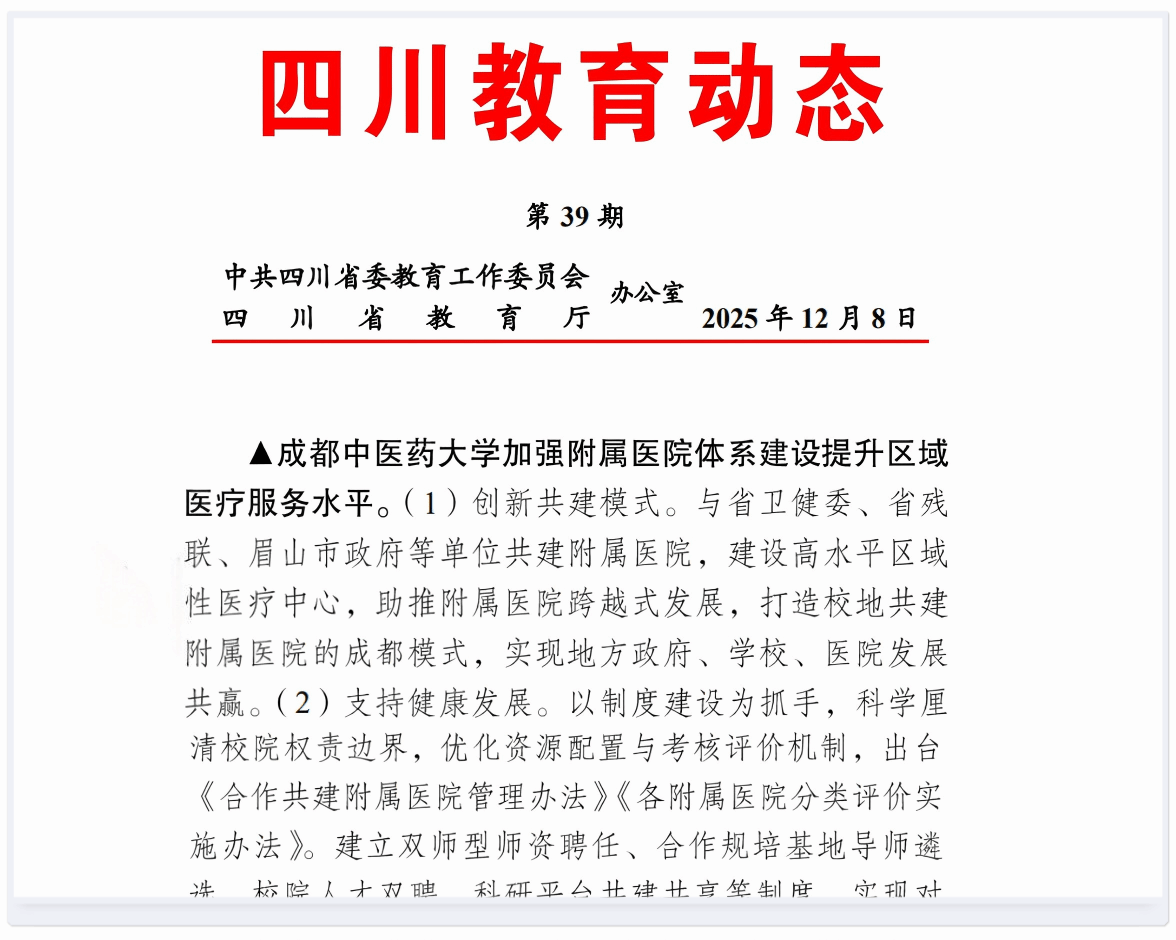 《四川教育动态》第39期刊登了beat365官网附属医院体系建设的经验分享——beat365在线唯一官网加强附属医院体系建设提升区域医疗服务水平。