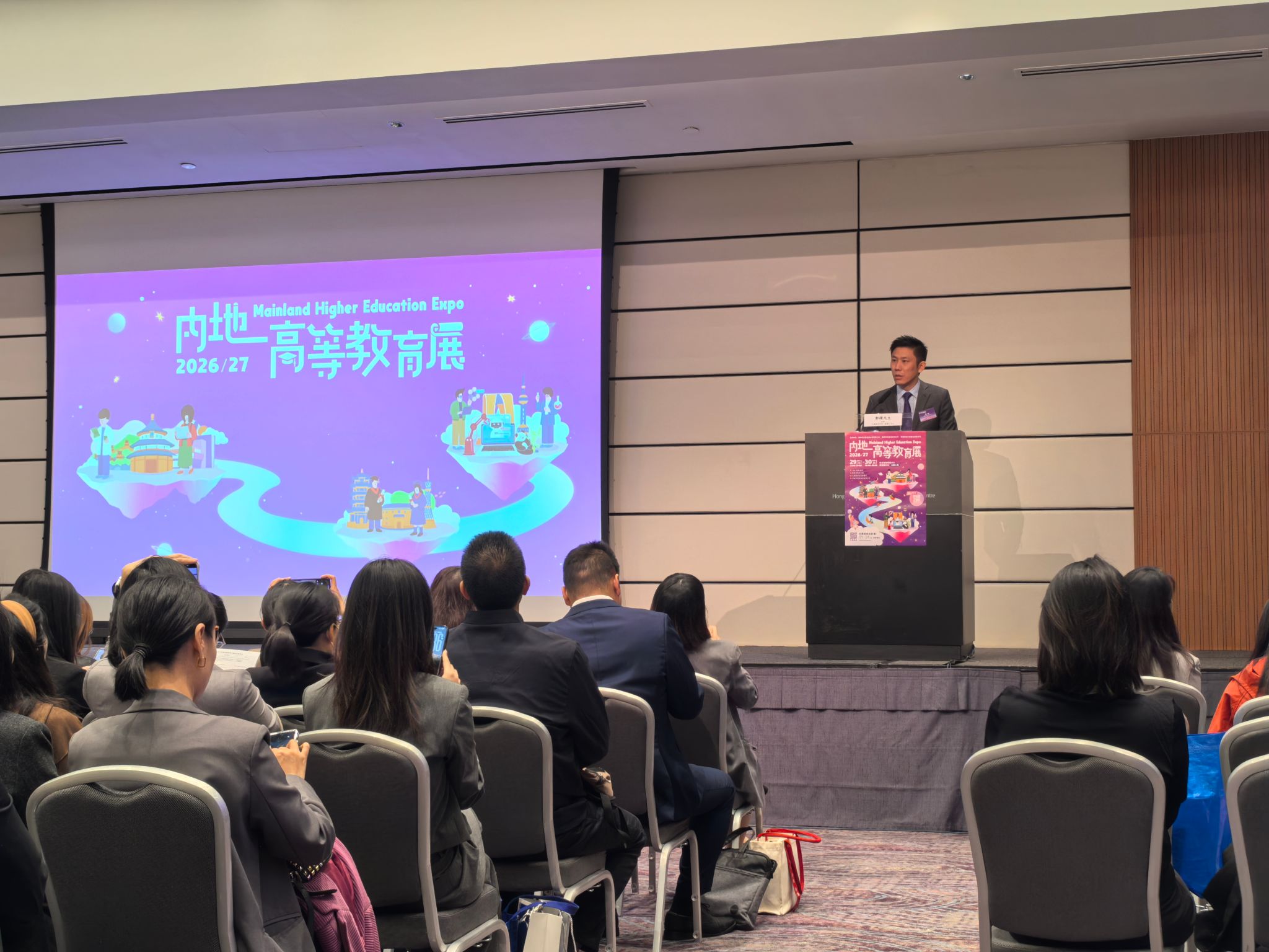 11月28日至11月30日,由教育部和香港特别行政区政府教育局联合举办的内地高等教育展在香港会议展览中心举行,157所参与香港文凭试收生计划的内地高等院校应邀赴展,beat365官网招生就业处处长莫凡带领工作人员参会。