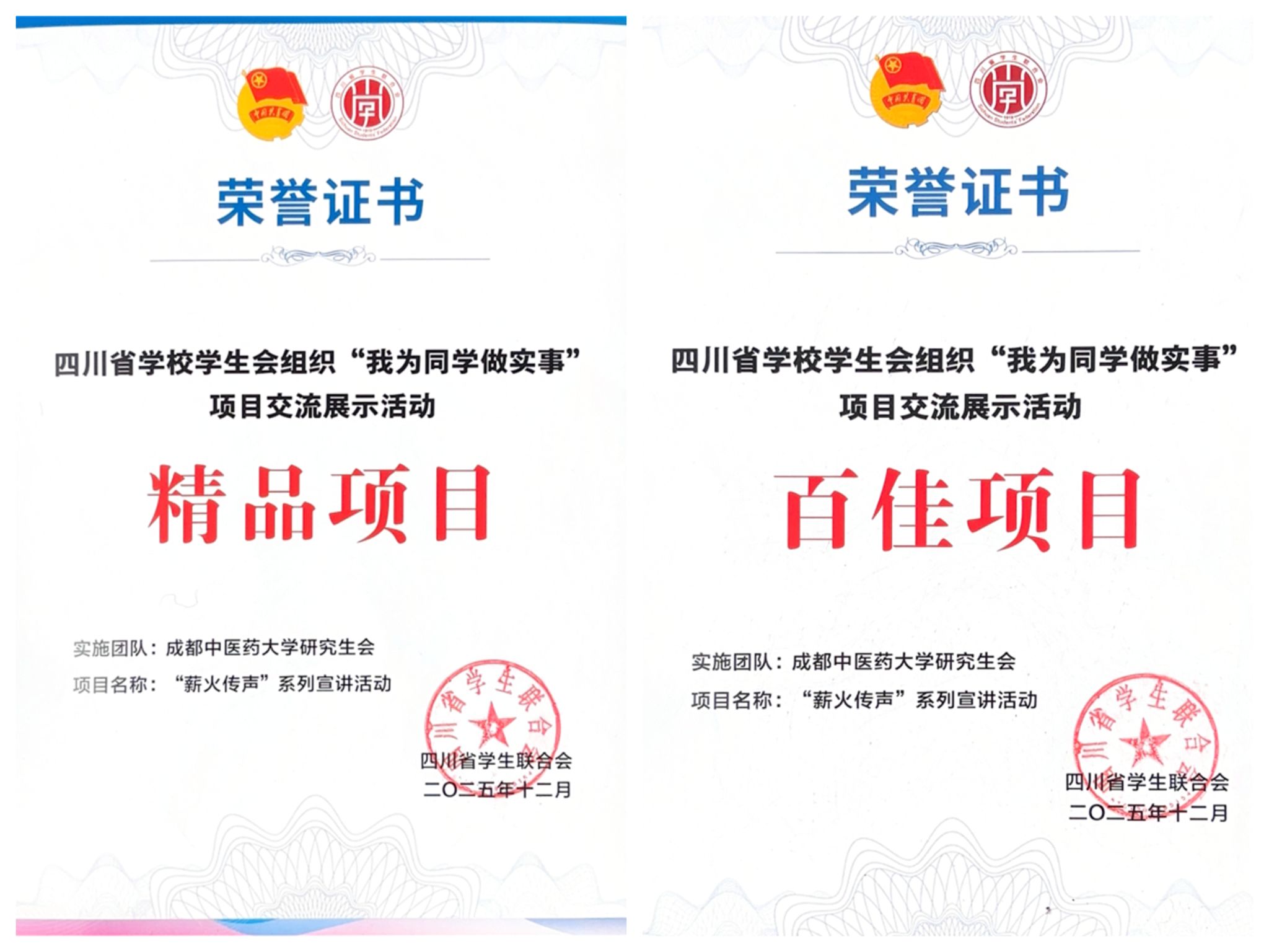 通过前期推选和现场答辩等环节,beat365官网研究生会申报的思想引领类项目——“薪火传声”系列宣讲活动,从全省214所学校的381个服务同学项目中脱颖而出,成功获评2025年四川省学校学生会组织“我为同学做实事”项目交流展示“精品项目”和“百佳项目”。