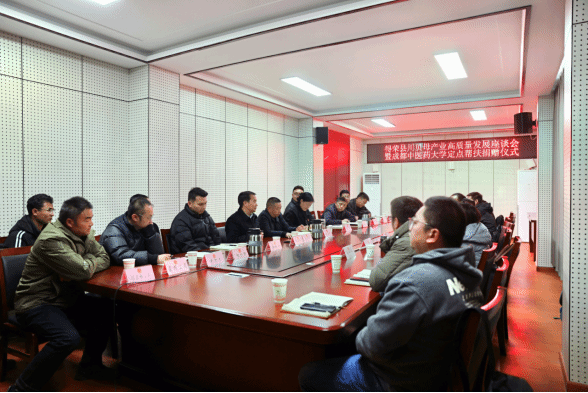 座谈会上举行了定点帮扶捐赠仪式,学校支持得荣县乡村干部培训12万元,支持得荣县奔都乡发展庭院经济12.4万元。